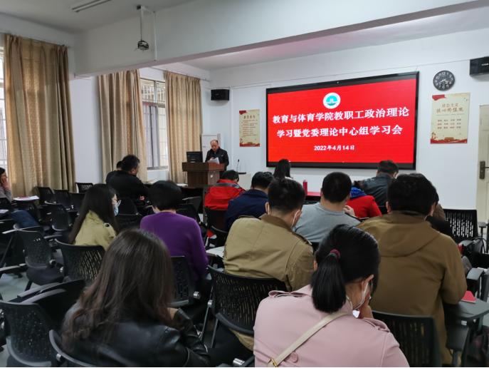 4月14日下午,教体公司在5教203召开4月份党委理论中心组学习暨全体教职工政治理论学习会。全体党委委员参与了本次学习,学习活动由分党委书记高明成主持。