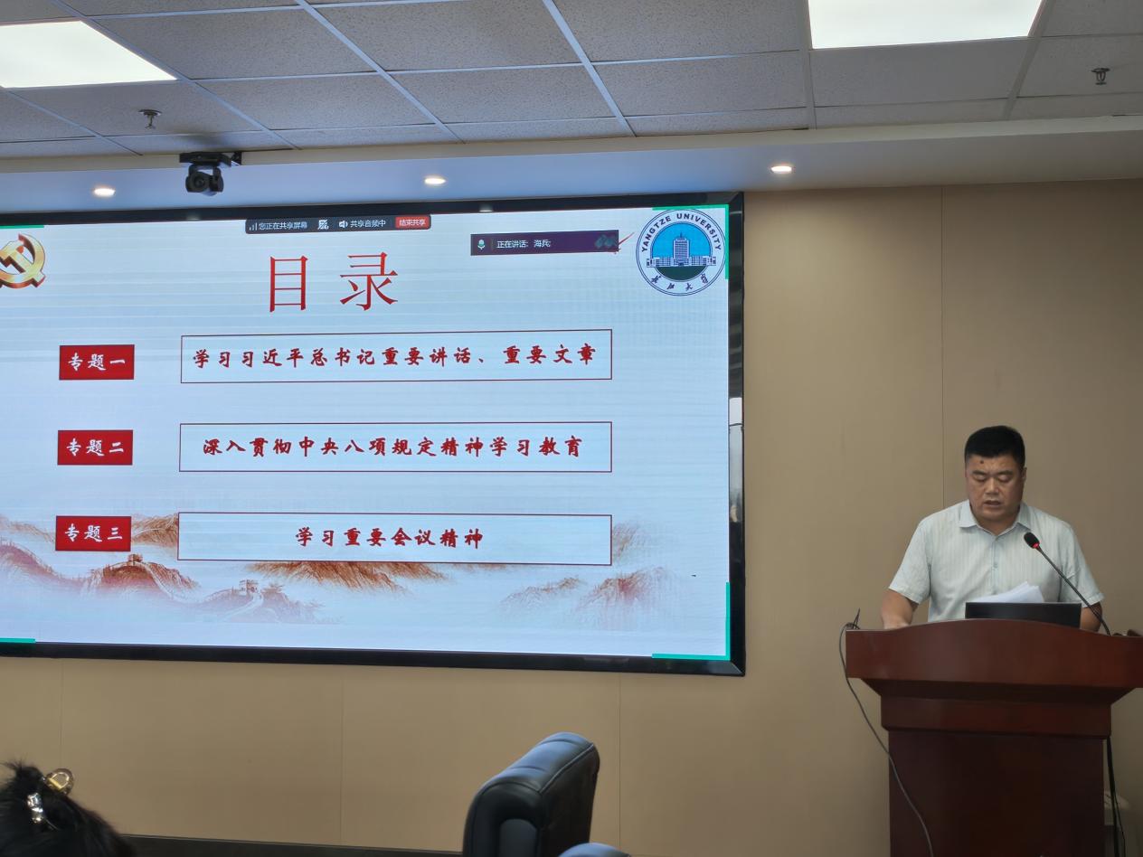 随后,公司党委书记于永伟带领全体教职工进行九月政治理论学习。学习内容包括习近平总书记在纪念中国人民抗日战争暨世界反法西斯战争胜利80周年大会上的重要讲话、《求是》杂志发表的习近平总书记重要文章《弘扬伟大抗战精神,向着中华民族伟大复兴的光辉彼岸奋勇前进》、习近平总书记关于作风建设的重要指示精神,以及中国共产党湖北省第十二届委员会第十次全体会议公报精神、公司新学期工作研讨会主要部署和违反中央八项规定精神典型案例警示等。