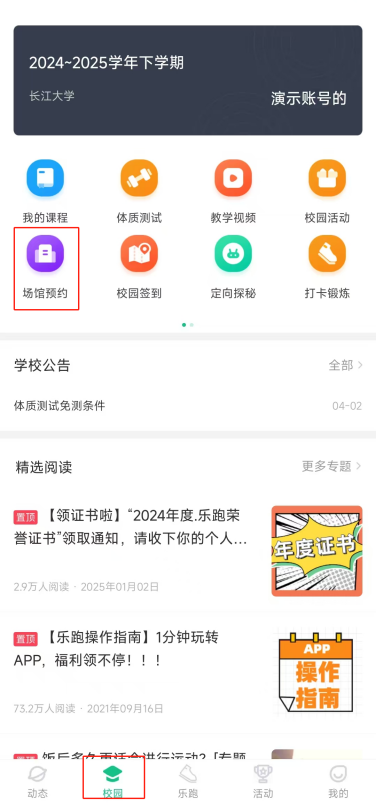 一、可预约场地 东校区:羽毛球场、乒乓球场 西校区:羽毛球场、乒乓球场 二、预约入口 登录“步道乐跑”app选择校园「场馆预约」,进行线上实名预约。 三、预约操作方法 1.手机端打开“步道乐跑”app,在校园模块选择「场馆预约」点击进入预约系统,选择要预约的场地。 2.选择预约日期和时间:进入预约系统后,会呈现一个日历页面显示日期。点击想要预约的日期,然后在该日期对应的时间段中,选择心仪的时间。系统使用不同颜色区分已被预约和可预约的时段,已预约时段显示为灰色,可预约时段显示为绿色。 3.选择场地:选择好预约时间后,选择“包场”预约。点击确认前仔细核对预约的日期、时间、场地等内容是否准确无误。确认无误后,点击 “确定预约” 选项。预约完成后在预约场地开始时间前10分钟内达到场地并缴纳费用。 4.取消预约:预约后因个人原因无法到达准时到达场地,须提前在场馆预约界面右上角“我的预约”中找到已预约场地并主动取消预约。在规定时间内未到达场地缴纳费用管理员有权取消预约。爽约三次将进入黑名单,30天内无法预约。