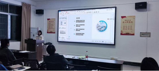 最后一位是陈军瑞同学,她就“新冠肺炎疫情下我国灾难教育的机遇和挑战”作了汇报,他首先谈到了新冠肺炎疫情下我国灾难教育的现状,再谈到疫情下灾难教育面临的机遇、其次是疫情下我国灾难教育实施的挑战、最后是后疫情时期灾难教育的应对策略。应对策略他提出了四点:制定指导纲要、开设校本课程、开展团队培训最后是整合学科资源。