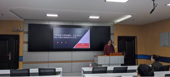 论坛最后,与会老师同汇报人就四个汇报进行了交流探讨。朱老师对同学们严谨的学术态度给予表扬,同时提出了宝贵的修改建议。现场不少研究生对四位同学的汇报进行了提问,汇报人都耐心清楚地给予解答。此次汇报大家相互探讨、交流经验,不仅展现了四位主讲人的专业水平,同时也拓宽了同学们的学术视野,调动了同学们的学术热情。