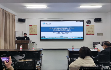 张晨茜同学就“后大众阶段美国高等教育人才培养模式改革及启示”进行了专题汇报。她首先介绍了核心概念,然后从研究背景研究思路和主要内容分别进行了阐述,最后进行了归纳小结。