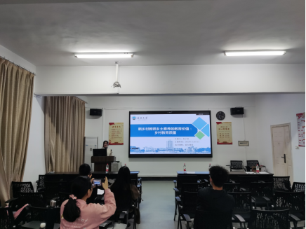 何宇菲同学就“新乡村教师乡土素养的教育价值:乡村教育质量”做了专题报告。何宇菲同学从乡村公司的困境和乡土素养等方面探讨了如何提高乡村教育质量,借助相关理论,表达了自己的看法和观点。