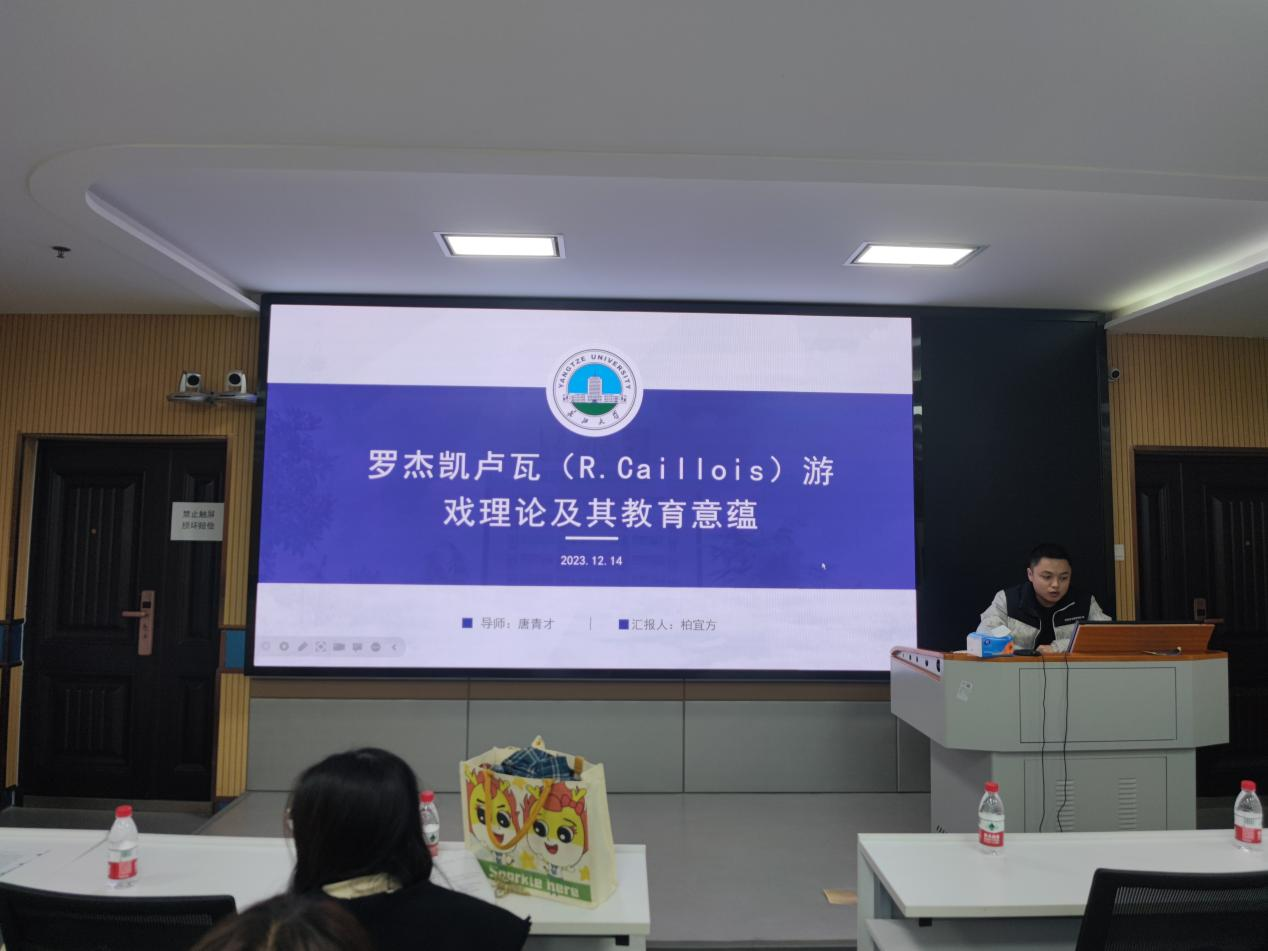 柏宜方同学汇报的主题是“罗杰凯卢瓦游戏理论及其教育意蕴”。柏宜方指出“学习化游戏”在几年后会从“最好有”到“必须有”,游戏丰富的形态是吸引员工投入学习,达到“寓教于乐”的效果。同时,柏宜方对“非教育性游戏”与“反教育性游戏”进行了区分。最后,柏宜方对凯卢瓦的游戏理论的不足进行了反思。