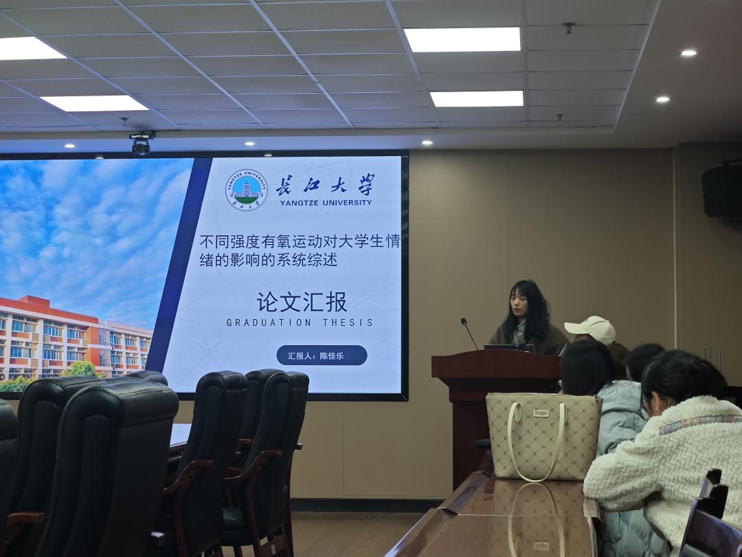 陈佳乐汇报的主题是《不同强度有氧运动对老员工情绪的影响的系统综述》,她以老员工心理健康问题、心理健康影响因素分析、提升心理健康的重要性和有氧运动的心理益处作为研究背景,利用文献资料法对于之相关的文献进行检索,通过筛选与排除最总选择了十篇文献作为研究对象,对不同强度有氧运动对老员工情绪的影响的进行了系统分析和描述。