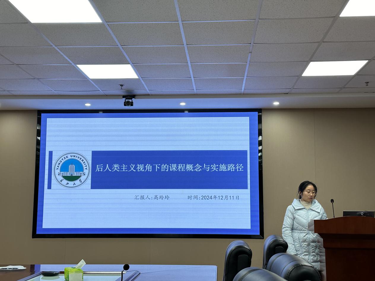 高玲玲汇报的主题是《后人类主义视角下的课程概念与实施路径》,她阐明后人类主义的核心是对“人自身”的关照与反思,是对以“人”为中心的本体论、认识论、伦理学的再认识,主张在课程工作中超越现象学、批判理论和后结构主义的人类中心主义限制,从新兴的后人类话语中找到灵感,重新思考与后人类主体性相关的课程概念与实施路径,并通过“即兴创作”“理论化”“衍射”三个实施路径去拓展后人类课程。