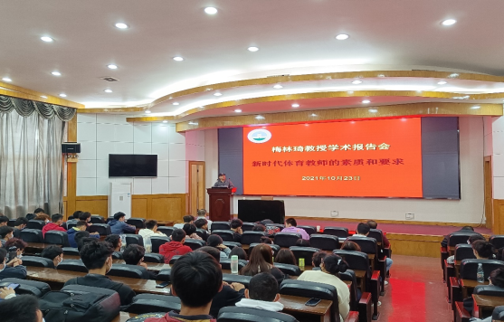 2021年10月23日上午,公司邀请湖北大学梅林琦副教授在11教报告厅举行了主题为《新时代体育教师的素质和要求》的专题教育讲座。会议由体育教育系杨青宝主任主持,足球专项教师姚廷军副教授、体育类2021级员工及参加湖北省高等公司体育教育专业员工基本大赛集训的员工参加了本次会议。