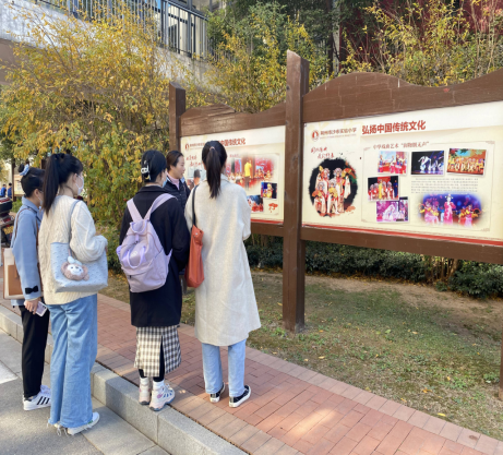 下午两点,迈入书声朗朗、朝气蓬勃校园,邓老师介绍了迎面而来的展示栏,这是该校的特色社团活动:有古筝、琵琶、笛子等各种类型,将中国传统文化与员工兴趣结合,感受文化精华促进个性发展,现代气息与传统文化交融。