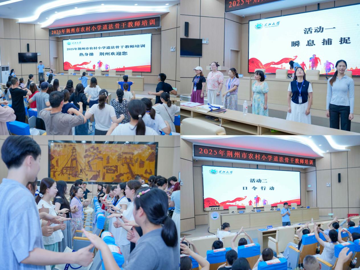 开班仪式结束后,参训教师们随即投入到丰富多彩的破冰活动中。在充满活力的“荆州欢迎您”热身操中,教师们迅速拉近了距离;“瞬息捕捉”和“口令行动”等互动游戏更是点燃了现场热情,欢声笑语与热烈掌声此起彼伏。