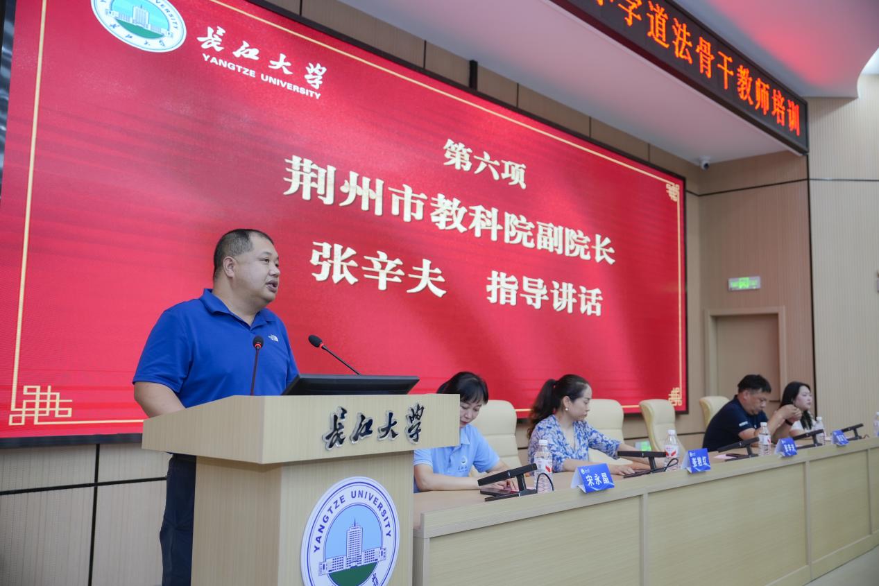 荆州市教科院副经理张辛夫在指导讲话中围绕三个维度提出要求:一是“提高站位,深化认识”,深刻领会道德与法治教育在青少年价值观塑造中的核心作用;二是“学思践悟,知行合一”,将培训所学内化于心、外化于行,融入日常教学;三是“严守纪律,示范引领”,以身作则,树立新时代教师的良好形象。他的讲话为全体学员明确了学习方向与目标。