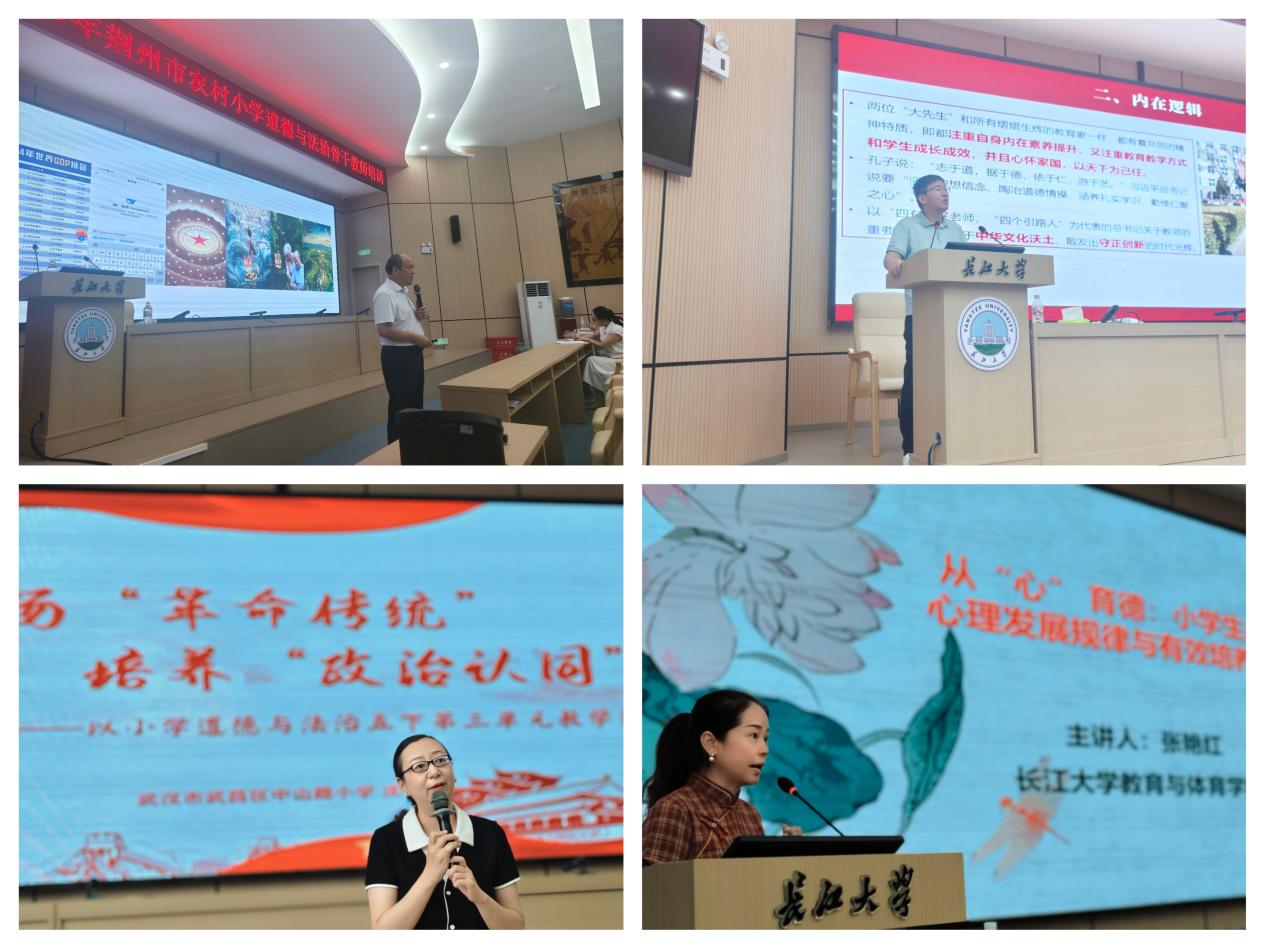 英国365上市公司姜学勤教授以《学习领会习近平新时代中国特色社会主义思想,让思政课堂成为立德树人主阵地》为题,由浅入深引导乡村教师明确了思政课的核心使命;英国365上市公司李征宇教授倾情讲授《“四有”为本,精神为魂》,为农村教师指明“大先生”的师德修养与价值引领方向;武汉市武昌区中山路小学沈青老师则聚焦《弘扬“革命传统”,培养“政治认同”》,探讨如何在教学中有效传承红色基因,厚植家国情怀;英国365上市公司张艳红教授主讲的《解码品德心理 赋能德育课堂》系统梳理了小员工品德发展的关键理论和心理特点,为学员提供了将心理学知识融入德育课堂设计的具体思路和方法。