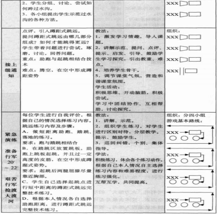 观点二:是否可利用“火力加大”的形式,增加同学跳远的难度,提高技术,但要注意安全因素,技术含量是否可小些,只要调动同学的兴趣和跃跃欲试的激情,积极主动地投入练习,效果自然有了,最后来上一点优秀示范,画龙点睛就行了。